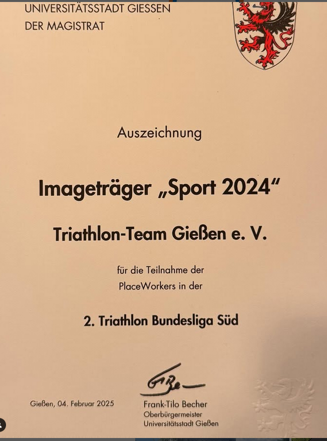 Am 4. Februar wurde unsere zweite Bundesliga-Mannschaft der Damen als Imageträger 2024 der Stadt Gießen ausgezeichnet. Die Auszeichnung durften die Teamleiterin Tabea Schuh und der erste Vorsitzende Philipp Neuhaus stellvertretend entgegennehmen.